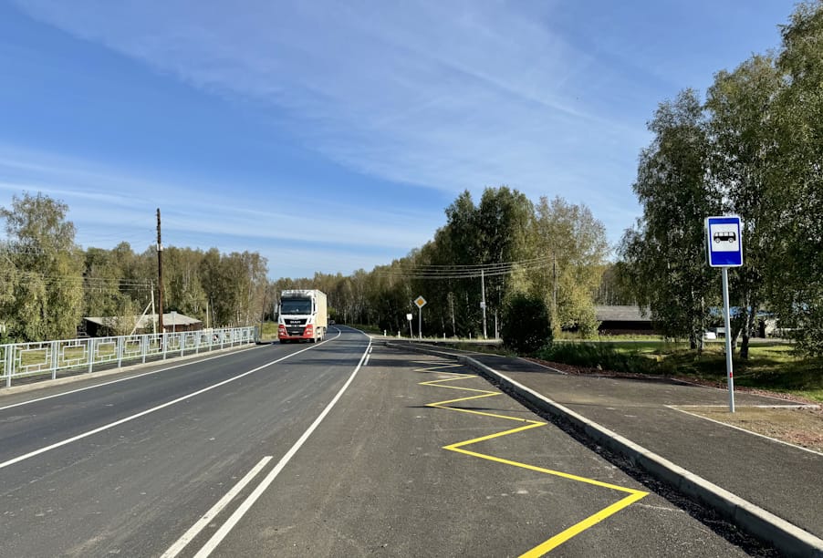 Кроме того, в районе поворота в деревню Петропавловка смонтированы новые автобусные остановки, включая устройство заездных карманов, площадок ожидания, тротуара и металлических павильонов. Участок на всем протяжении обустроен сигнальными столбиками, новой дорожной-знаковой информацией и разметкой из термопластика с включением в нее стеклошариков для лучшей видимости в темное время суток.