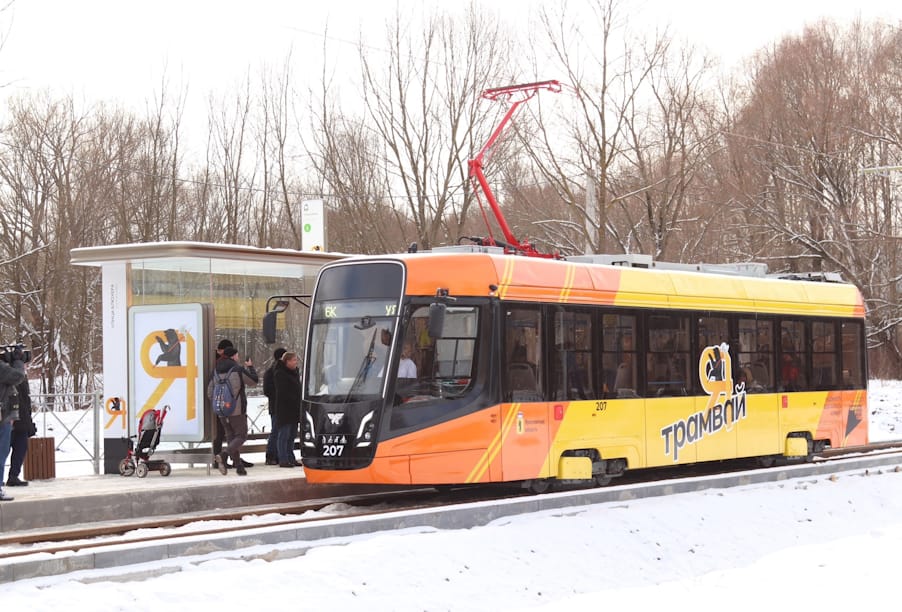 «В Ярославле запущено рабочее движение по трамвайному маршруту № 6к. Он соединит Ярославский моторный завод с улицей Блюхера. На линию вышли четыре современных односекционных трамвая. Всего их закуплено 27. До конца года в город придет еще 20 вагонов. Составы произвели специально для нас и оформили в цветах региона. Новый подвижной состав обеспечит пассажирам высокий уровень комфорта и безопасности. Уверен, жители оценят плавность хода, удобство салона, системы информирования. Таким и должен быть городской транспорт, и мы продолжим работу по его модернизации», — отметил губернатор Ярославской области Михаил Евраев.