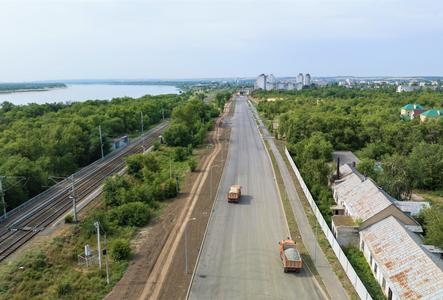 Работы на объекте ведутся высокими темпами: на участке 1,6 км выполнено устройство основания нового проезда, уложен выравнивающий и верхний слои асфальтового покрытия – 75 % от запланированного объема. Параллельно укладывается щебеночное основание под тротуары и велосипедные дорожки, ведется устройство ливневой канализации и локальных очистных сооружений, в местах высокого уровня грунтовых вод основание дополнительно усиливают, чтобы обеспечить надежность ездового полотна.